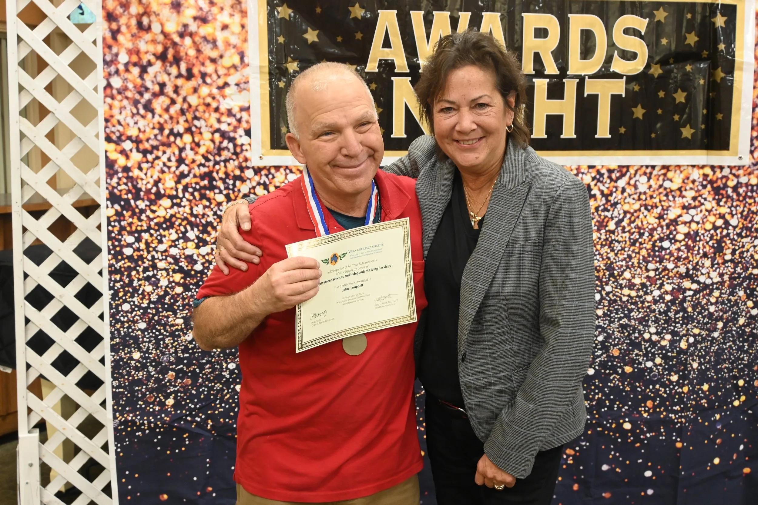 Villa’s regional office in Thousand Oaks provides a wide variety of services for adults with intellectual/developmental disabilities. In our Employment Program, Villa is lucky to have a longtime collaboration over 20 years and counting with many supportive businesses. John serves as one West Region success story as he has worked at Home Depot for 20 years, consistently demonstrating exceptional dedication and hard work. Over the course of his career, he has built an extensive knowledge of the products across the store, making him a valuable asset to the team. His commitment and expertise truly define him as a hardworking and reliable professional. Outside of Villa, John is known for being compassionate, appreciative of his Villa staff, deeply valuing his mother, being a loving dog owner to “Murphy” and was made Villa’s Employee of the Year 2024.